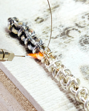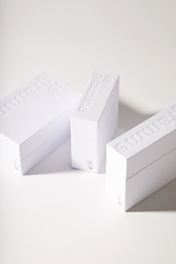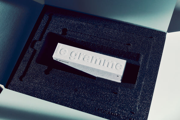 fabriquée en france à partir de métaux précieux recyclés, la collection entrelacs est inspirée de la forme élémentaire du cercle. chaque maillon se compose d'un cercle entremêlé perpendiculairement dans un autre. au fil des entrelacs, la répétition systématique de ce maillon crée un rythme pour composer une chaine propre à l’adn de le gramme.